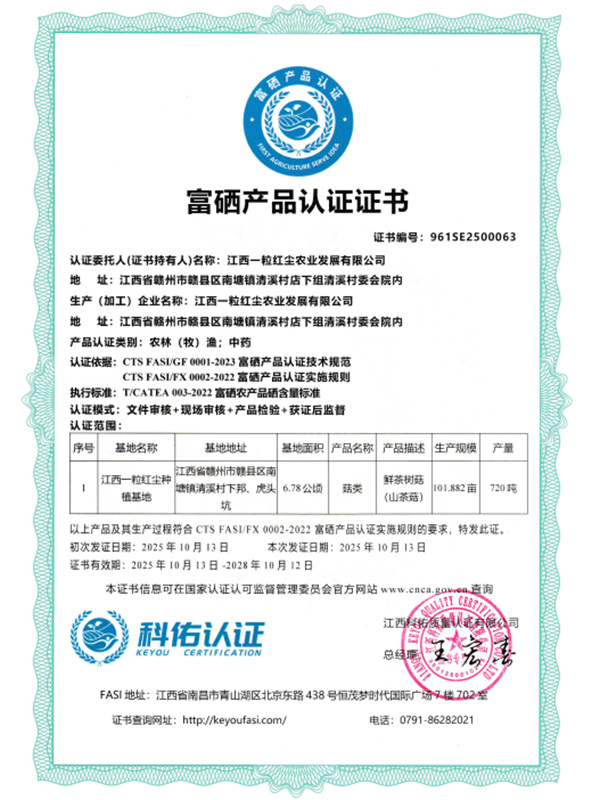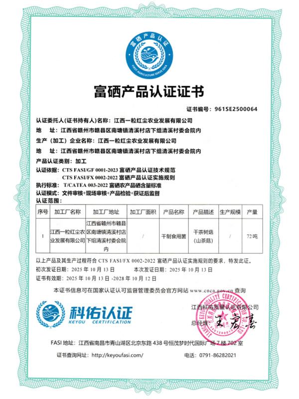 富硒產品認證證書